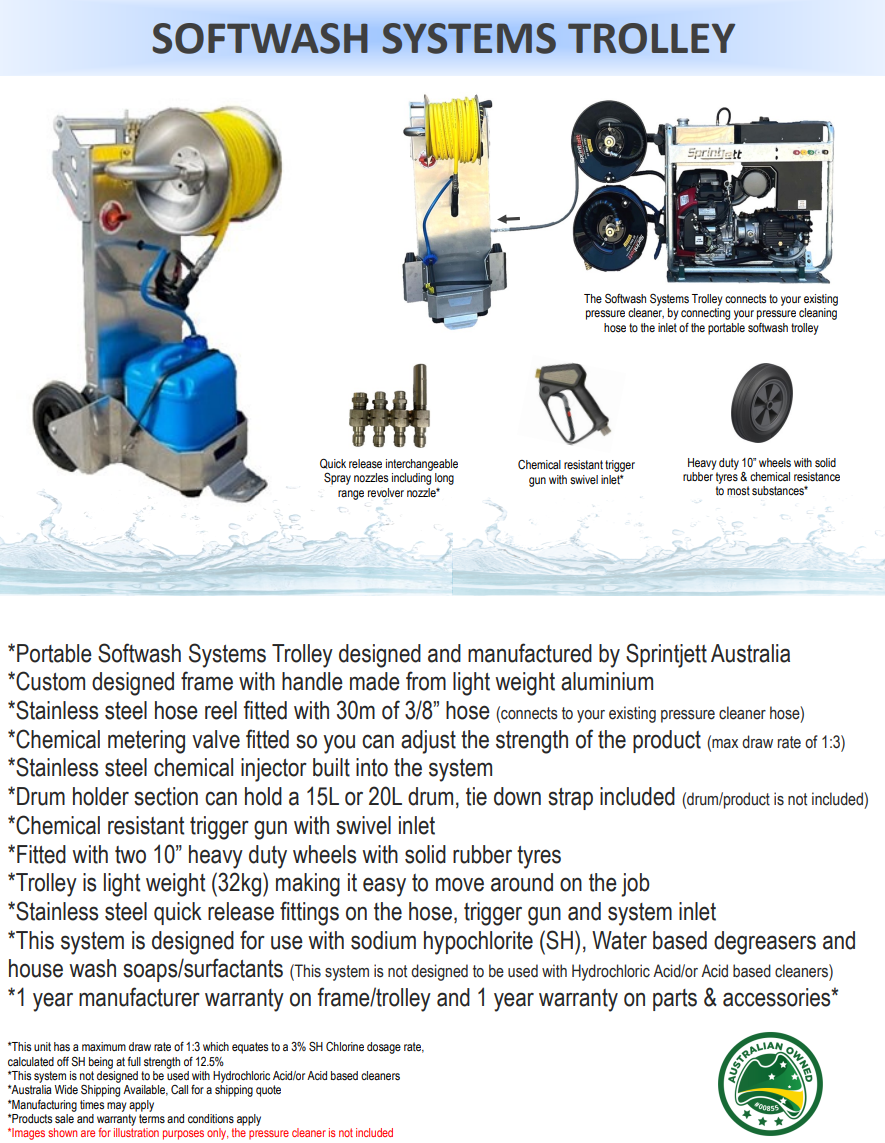 - Portable Softwash Systems Trolley designed and manufactured by Sprintjett Australia